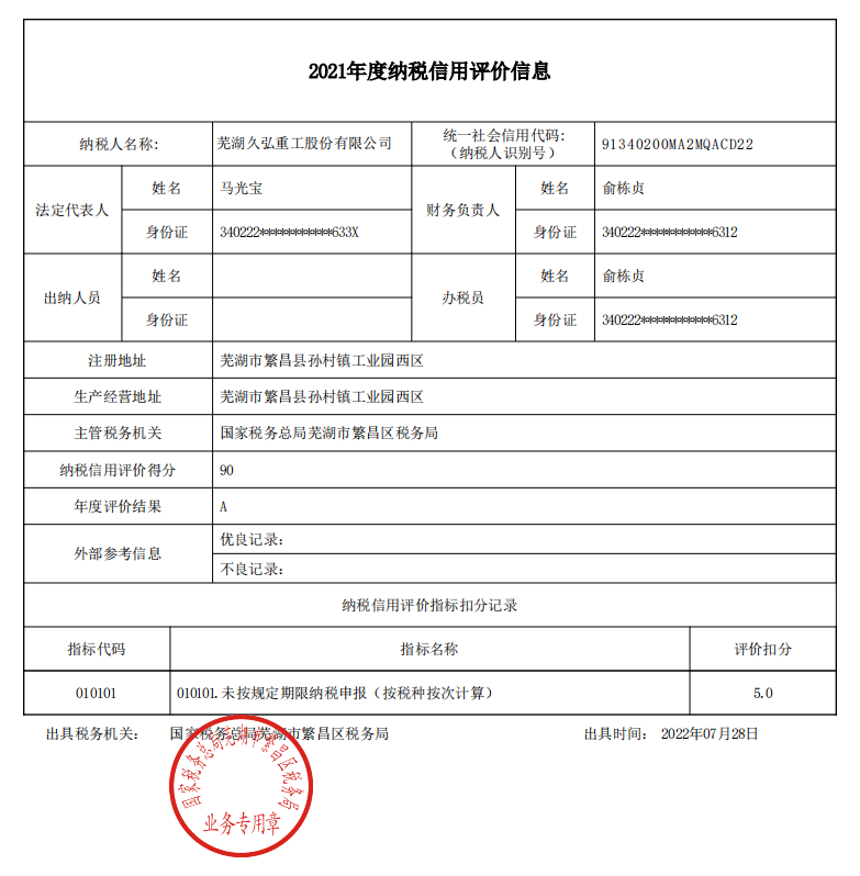 蕪湖久弘重工股份有限公司